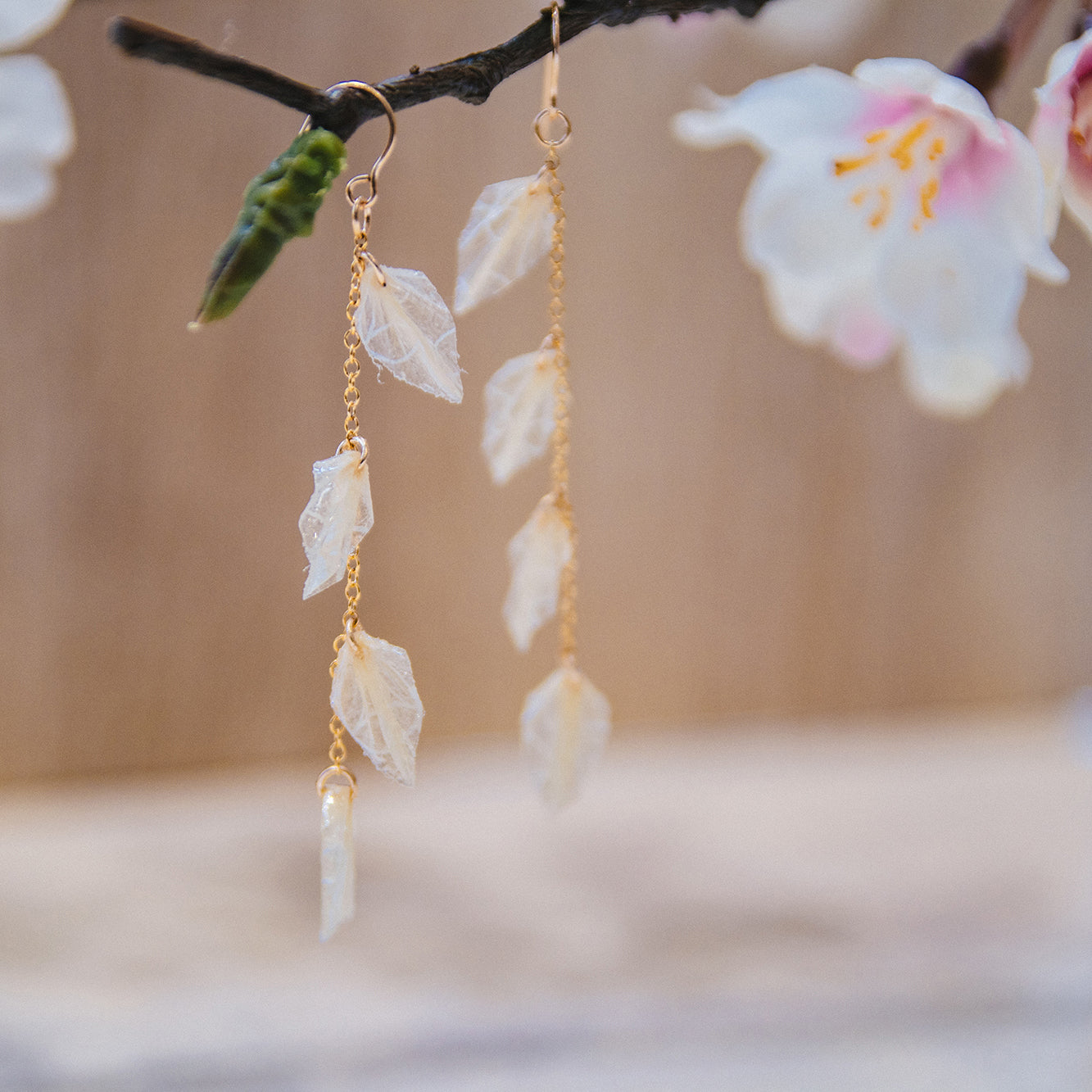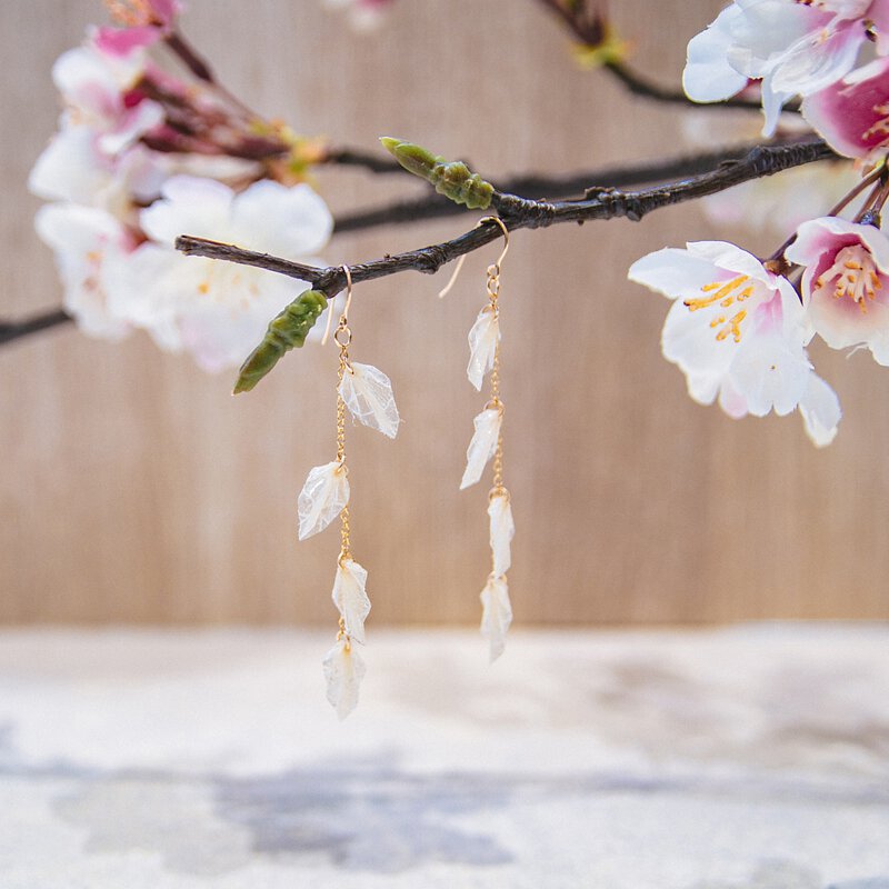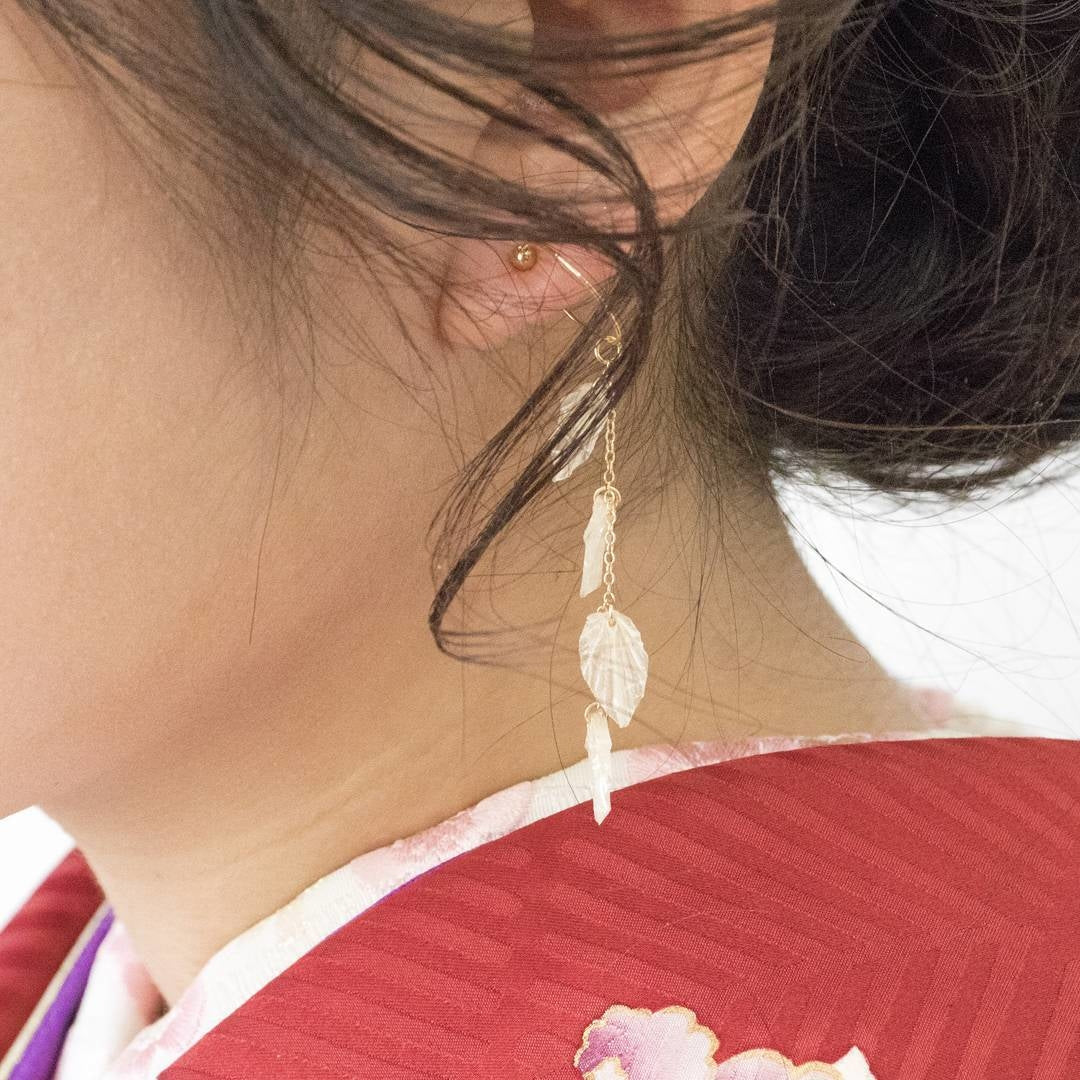 宛如將樹葉落下的時刻凍結一般,將自然之美濃縮在耳環中。